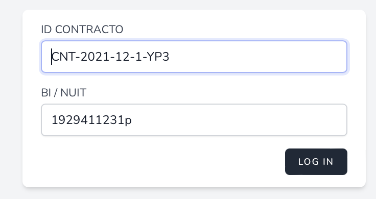 Para fazer o seu pagamento, tenha o código do seu contracto e o número do Documento de Identificação em que foi registrado.